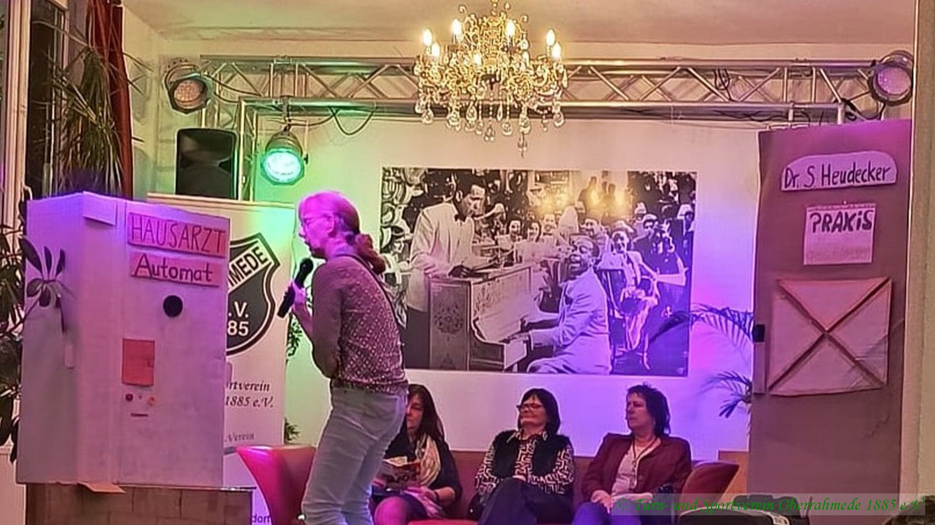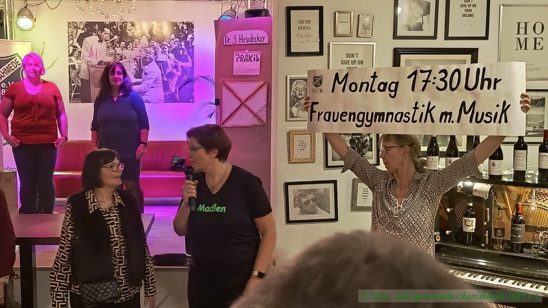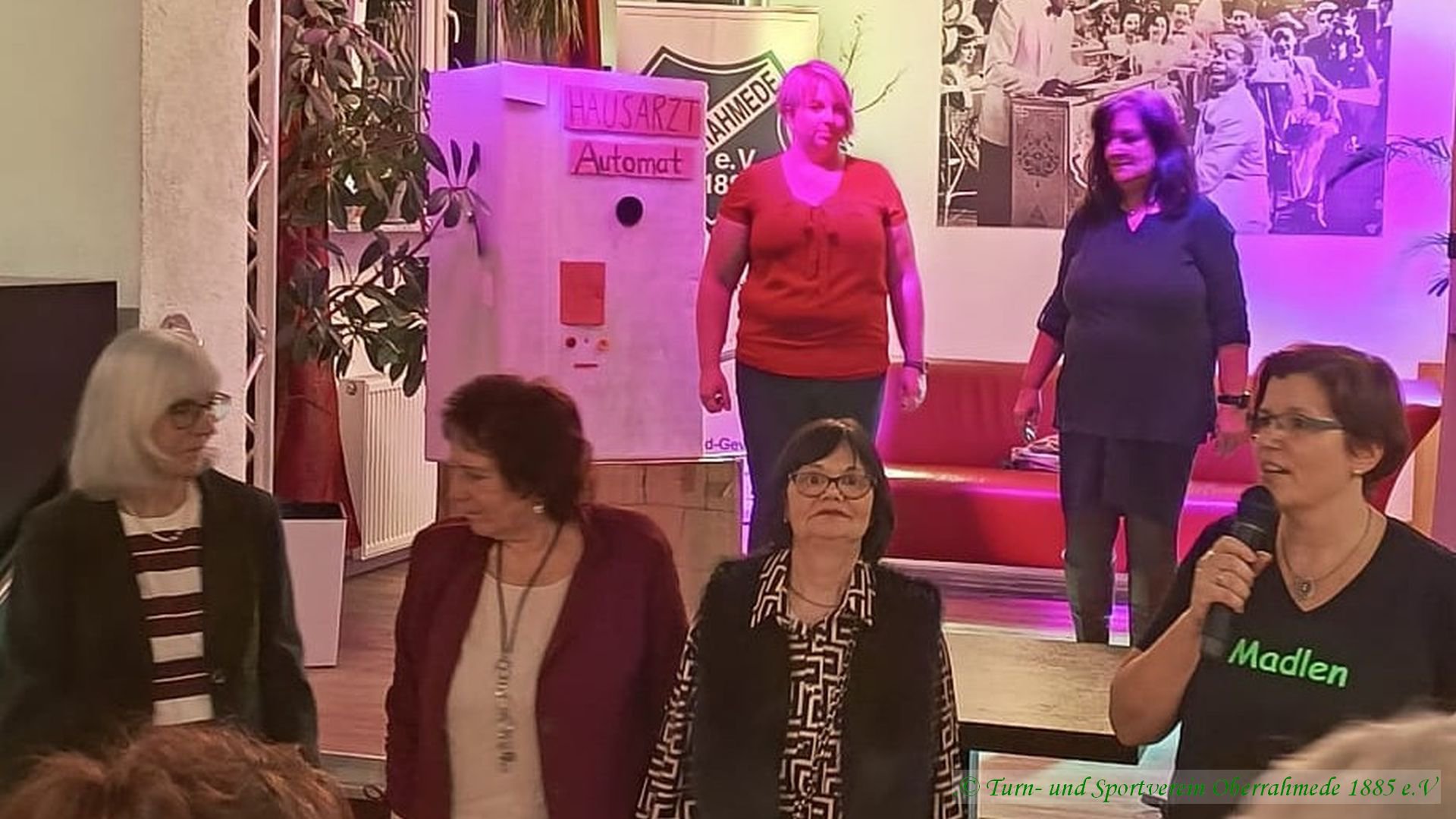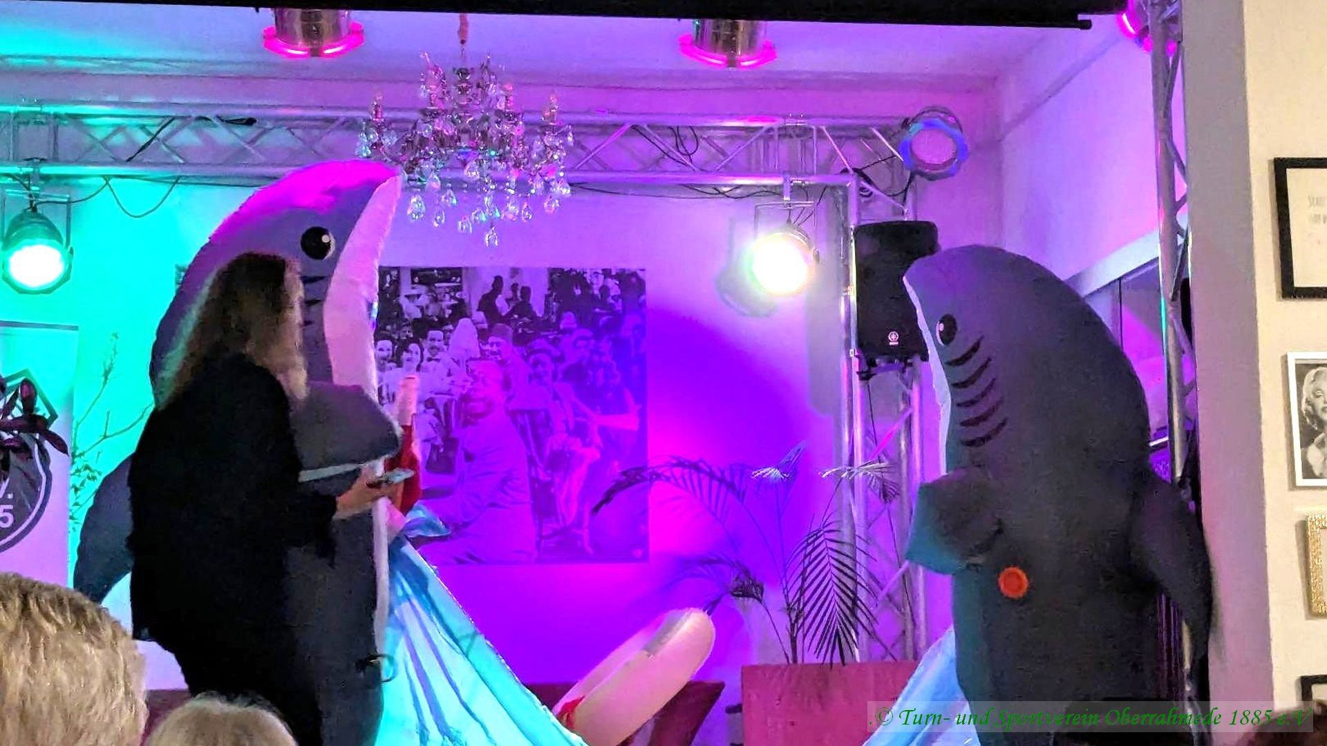 Nach einem festlichen Essen erwartete die Gäste ein abwechslungsreiches Unterhaltungsprogramm, das eindrucksvoll zeigte, wie vielseitig und lebendig der Verein ist. Den schwungvollen Auftakt machte die Gruppe „Fit ins Wochenende“ mit einem mitreißenden Warm-up. Anschließend sorgte ein Wasserballett mit lebendigen Haien für viele Lacher, bevor die Zumba-Gruppe das Publikum mit energiegeladenen Rhythmen begeisterte. Zwei Frauen aus der Step-Aerobic Gruppe zeigten uns höchst anspruchsvolle Übungen im Geräteturnen. Moderne Akzente setzte der K-Pop-Tanzauftritt von Neyla, und zum Abschluss regte ein Sketch über die moderne Medizin zum Nachdenken an und der ganze Saal tanzte gymnastisch zu einem gute Laune Lied.